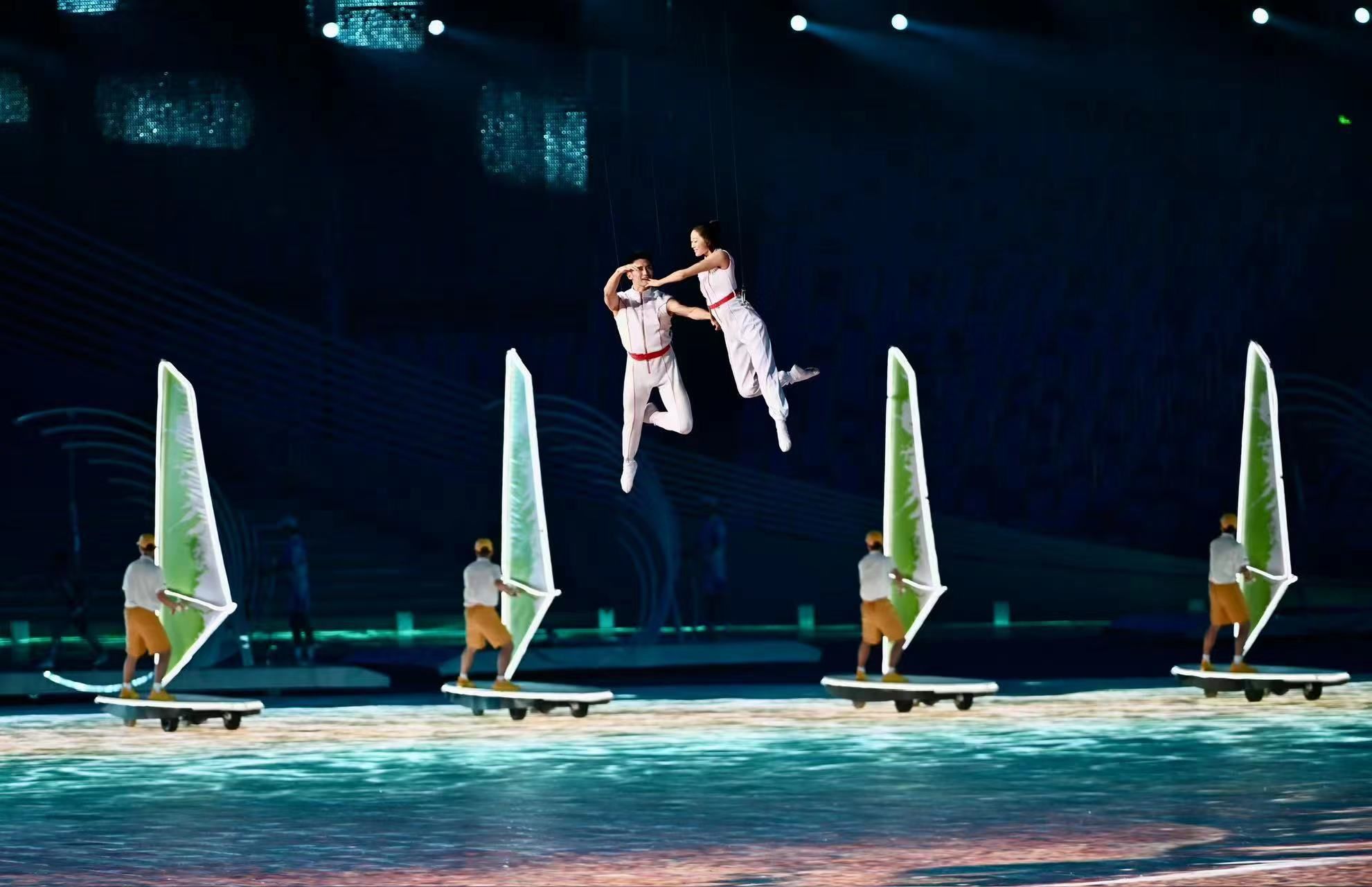 開幕式文藝表演以“潮起亞細亞”為總主題,分為《國風(fēng)雅韻》《錢塘潮涌》《攜手同行》三大篇章,寓意著新時代的中國正與亞洲、世界交融激蕩,像浪潮一樣奔涌向前。開幕式首次將3D雙威亞技術(shù)應(yīng)用于大型運動場中,首次實現(xiàn)“數(shù)實融合”點火儀會開幕式在浙江省杭州市隆重舉行。開幕式文藝表演以“潮起亞細亞”為總主題,分為《國風(fēng)雅韻》《錢塘潮涌》《攜手同行》三大篇章,寓意著新時代的中國正與亞洲、世界交融激蕩,像浪潮一樣奔涌向前。開幕式首次將3D雙威亞技術(shù)應(yīng)用于大型運動場中,首次實現(xiàn)“數(shù)實融合”點火儀式。本次亞運會有來自亞洲45個國家和地區(qū)代表團的1.2萬多名運動員報名參賽,共設(shè)40個大項、61個分項、481個小項,是史上規(guī)模最大、項目最多、覆蓋面最廣的一屆亞運會。