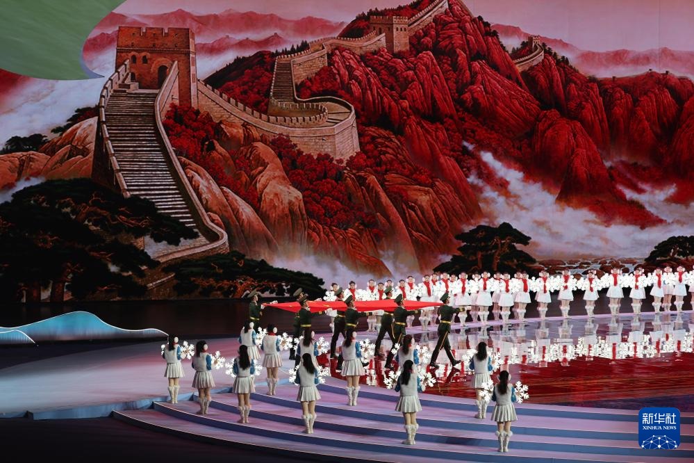 ??2月17日,中華人民共和國第十四屆冬季運(yùn)動(dòng)會會旗入場。新華社記者 連振 攝