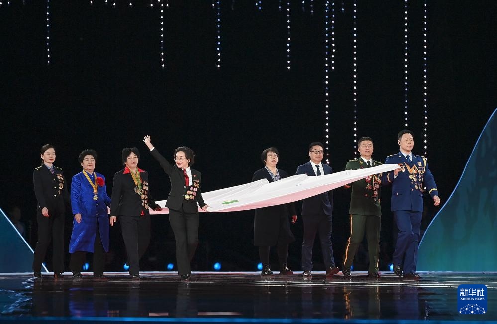 ??2月17日,中華人民共和國冬季運(yùn)動(dòng)會會旗在開幕式上入場。新華社記者 黃偉 攝