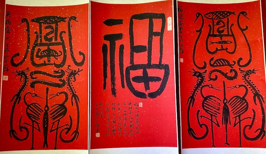 “媽媽我又認識了一個‘?!?,原來元宵節(jié)也要貼‘?!郑€要貼吉祥的畫,我還要和玉兔一起吃元宵?!?歲的陳昭穎參觀完百福迎春賀歲作品展后因為認識一個“福”字開心地說。