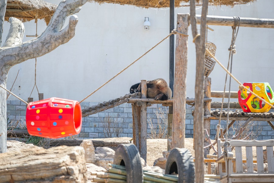 動(dòng)物園里正在睡覺的大熊貓