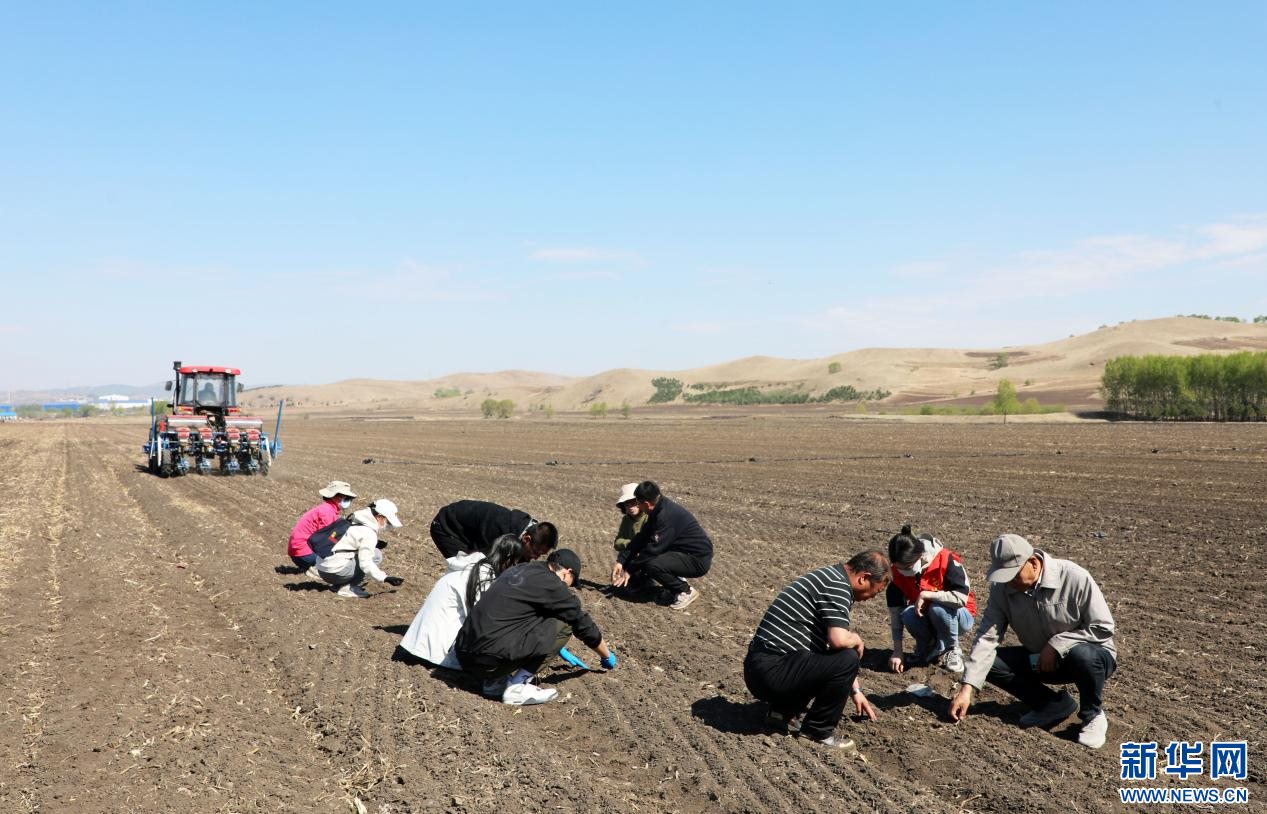 ??5月7日,在內(nèi)蒙古自治區(qū)扎蘭屯大豆科技小院,內(nèi)蒙古農(nóng)業(yè)大學(xué)研究生在大河灣鎮(zhèn)尖山子村試驗(yàn)田播種大豆。新華網(wǎng)發(fā)(韓冷 攝)