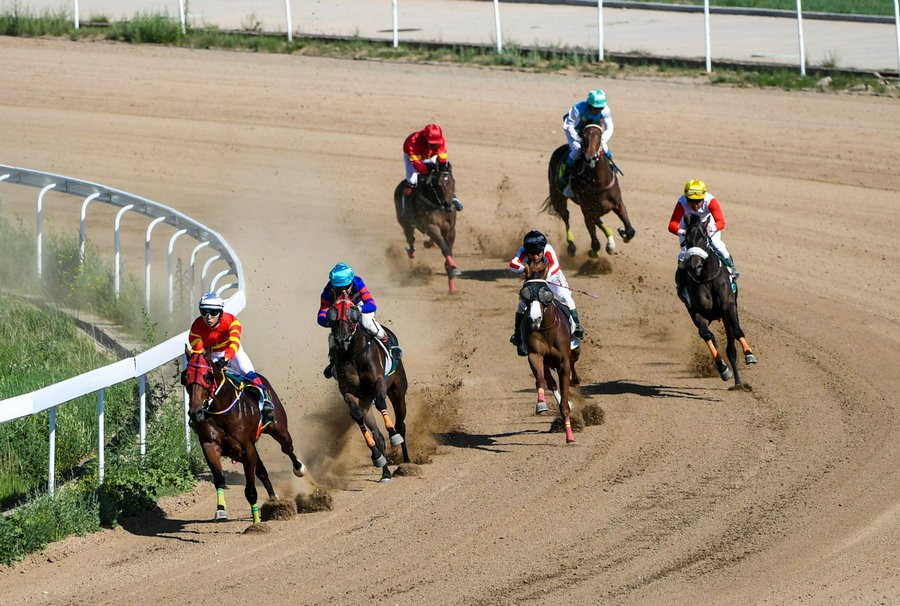 6月16日,中國(guó)速度賽馬積分賽暨內(nèi)蒙古呼和浩特速度賽馬常規(guī)賽第五個(gè)賽馬日在內(nèi)蒙古少數(shù)民族群眾文化體育運(yùn)動(dòng)中心開(kāi)賽,當(dāng)日先后進(jìn)行了3歲及以上中國(guó)出生純血馬1000米、2歲純血馬1000米、2歲中國(guó)出生純血馬1000米、無(wú)限定走馬1200米、蒙古馬2000米賽事,蒙古馬3000米六場(chǎng)比賽,馬背上的速度競(jìng)賽和場(chǎng)下精彩的演出給觀眾獻(xiàn)上一場(chǎng)精彩的視覺(jué)盛宴。(記者:孟和朝魯)