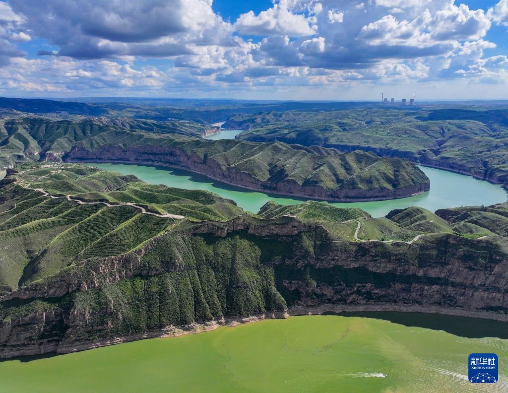 ??這是8月12日拍攝的老牛灣北側(cè)的一處黃河峽谷(無人機(jī)照片)。