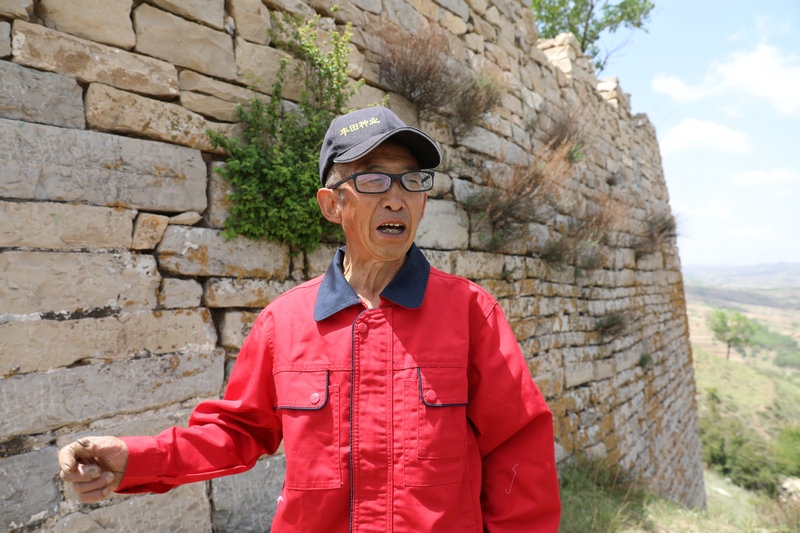 “家在長(zhǎng)城腳下,從小就與長(zhǎng)城為伴,那時(shí)長(zhǎng)城上鋪滿青磚,外側(cè)以青石砌筑?!敝x軍邊走邊說(shuō),“之前由于保護(hù)長(zhǎng)城的意識(shí)薄弱,村里人把長(zhǎng)城上的磚石拆下砌筑窯洞。青石有的太重,只能將其鑿分為二,兩人合力用杠才能抬走?!?/p>