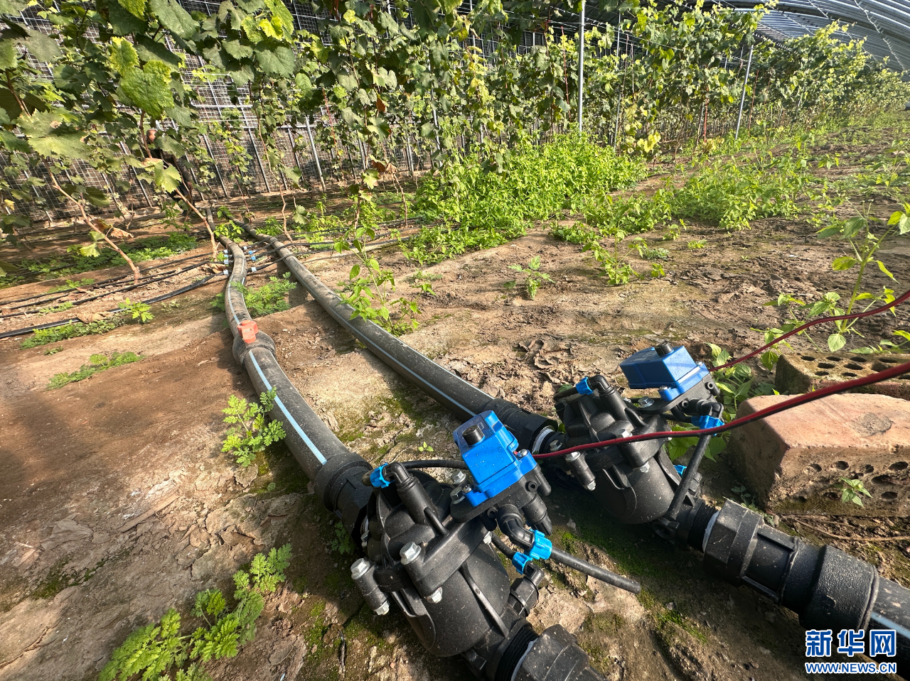 ??這里種植的葡萄個(gè)頭大、口感好、產(chǎn)量高,秘訣在于有一套集水肥一體、二氧化碳?xì)夥省⒅悄軠乜氐裙δ苡谝惑w的智慧農(nóng)業(yè)種植管控系統(tǒng)。