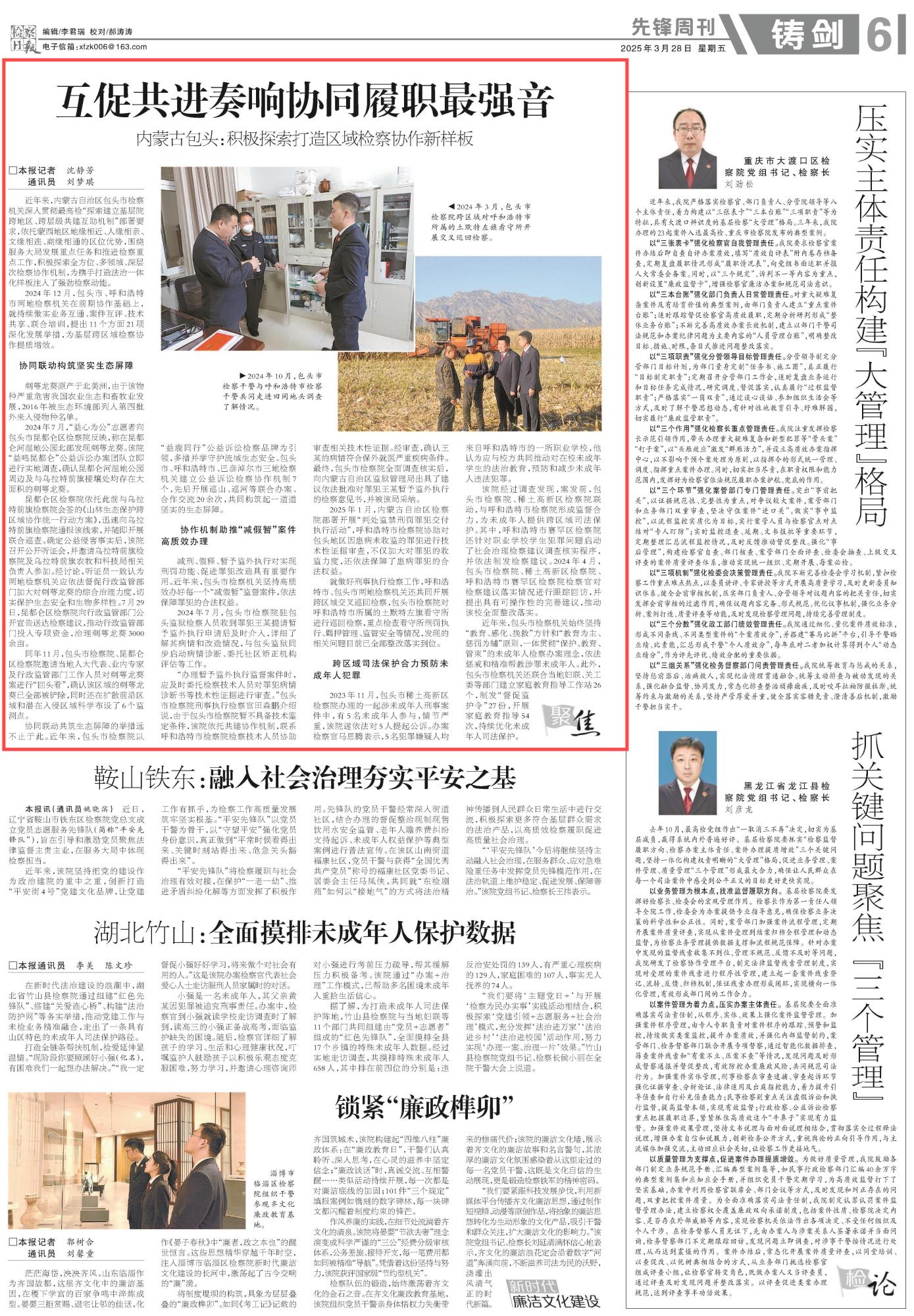 2025年3月28日,《檢察日報》第6版刊發(fā)題為《互促共進奏響協(xié)同履職最強音 內(nèi)蒙古包頭:積極探索打造區(qū)域檢察協(xié)作新樣板》的文章,報道了內(nèi)蒙古自治區(qū)包頭市檢察機關(guān)深入貫徹最高檢“探索建立基層院跨地區(qū)、跨層級共建互助機制”部署要求,積極探索全方位、多領域、深層次檢察協(xié)作機制,為攜手打造法治一體化樣板注入了強勁檢察動能。