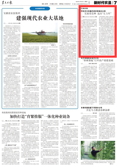 2025年3月29日,《農(nóng)民日?qǐng)?bào)》第7版刊發(fā)題為《呼倫貝爾農(nóng)墾巴彥農(nóng)牧場(chǎng)分公司實(shí)驗(yàn)育良種 選出“生力軍”》的文章,報(bào)道了近年來(lái),巴彥農(nóng)牧場(chǎng)分公司始終堅(jiān)持“科技興農(nóng)”戰(zhàn)略,不斷加大在農(nóng)業(yè)科研方面的投入。農(nóng)業(yè)科技園區(qū)實(shí)驗(yàn)室作為技術(shù)創(chuàng)新與應(yīng)用的前沿陣地,承擔(dān)著多項(xiàng)重要的科研任務(wù),在種子培育、土壤改良、病蟲害防治等多個(gè)領(lǐng)域開展了深入研究與實(shí)踐。