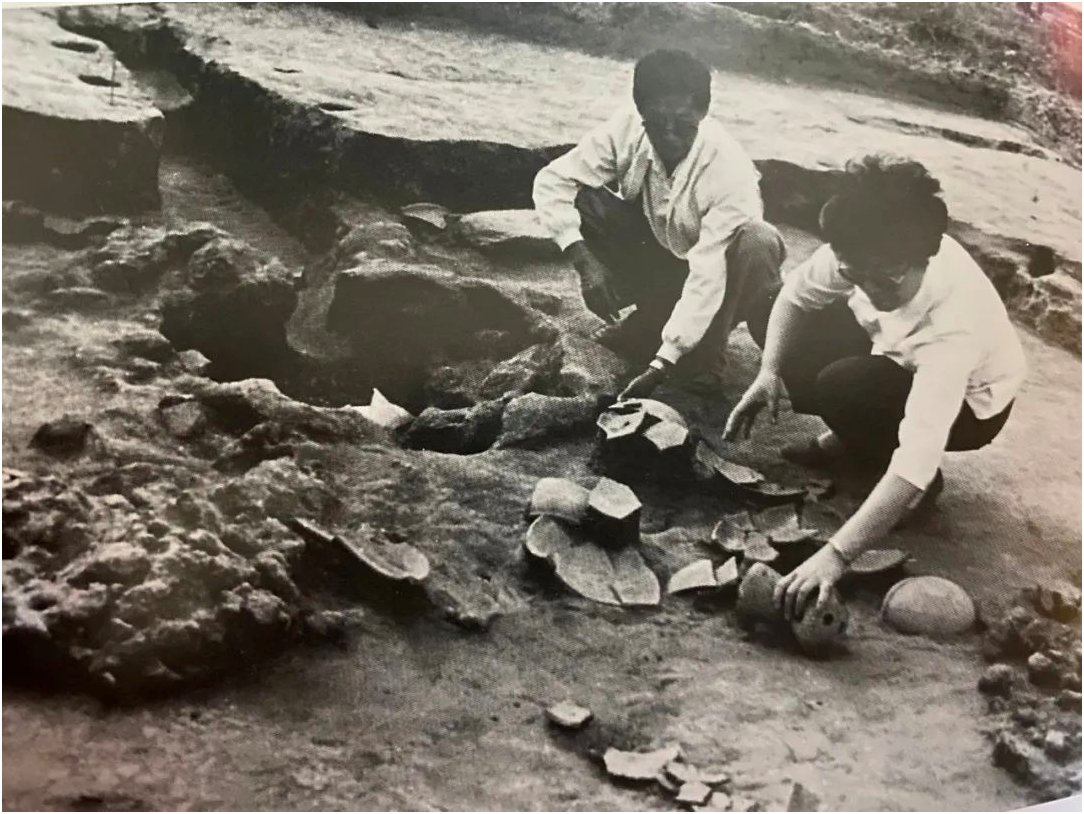 田廣金(左)在岱海遺址群發(fā)掘現(xiàn)場。