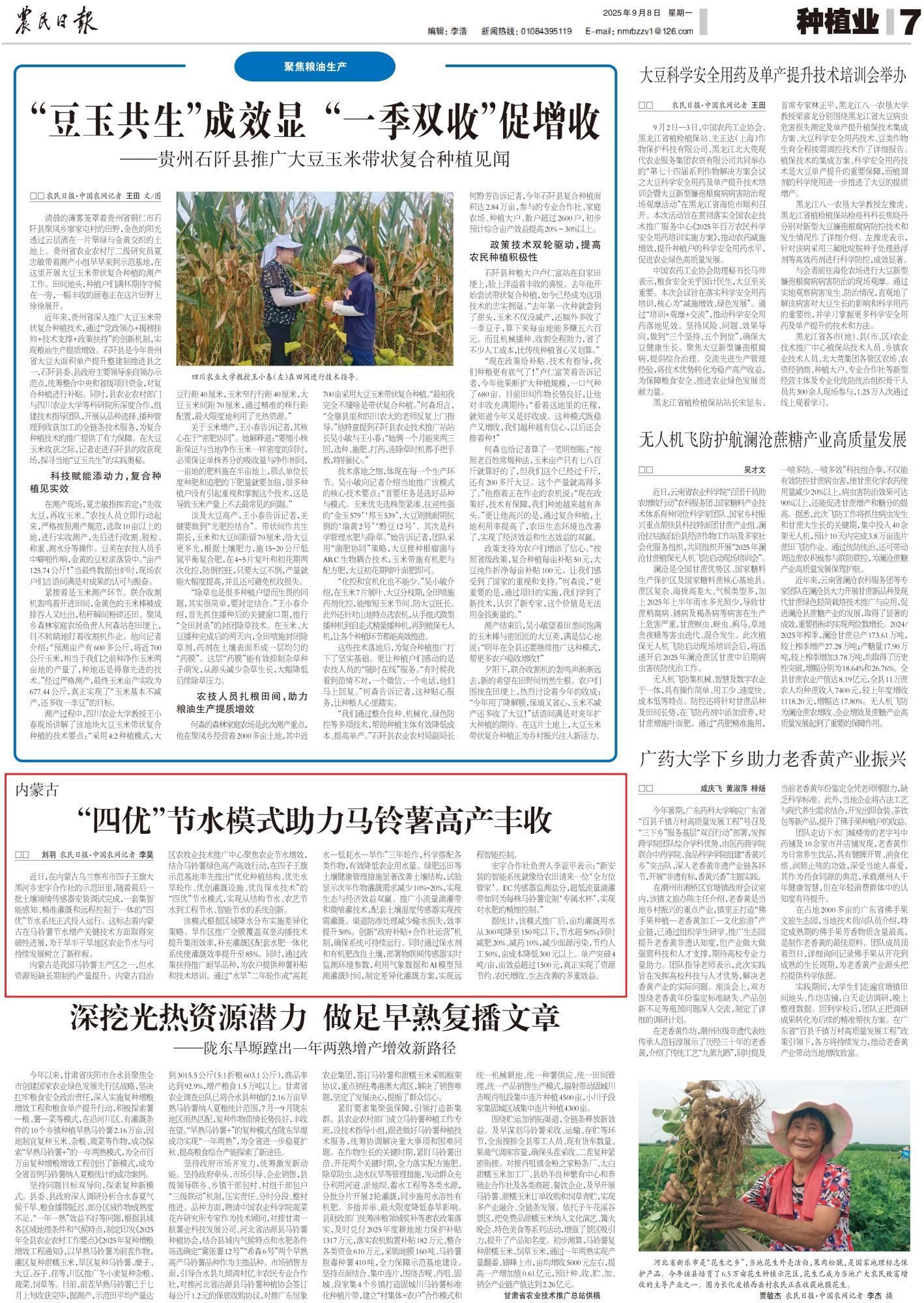 2025年9月8日,《農(nóng)民日報》第7版整版刊發(fā)題為《內(nèi)蒙古“四優(yōu)”節(jié)水模式助力馬鈴薯高產(chǎn)豐收》的文章,報道了在內(nèi)蒙古烏蘭察布市四子王旗大黑河鄉(xiāng)宏宇合作社的示范田里,隨著最后一批土壤墑情傳感器安裝調(diào)試完成,一套集智能感知、精準(zhǔn)灌溉和遠(yuǎn)程控制于一體的“四優(yōu)”節(jié)水系統(tǒng)正式投入運行。這標(biāo)志著內(nèi)蒙古在馬鈴薯節(jié)水增產(chǎn)關(guān)鍵技術(shù)方面取得突破性進(jìn)展,為干旱半干旱地區(qū)農(nóng)業(yè)節(jié)水與可持續(xù)發(fā)展樹立了新樣板。