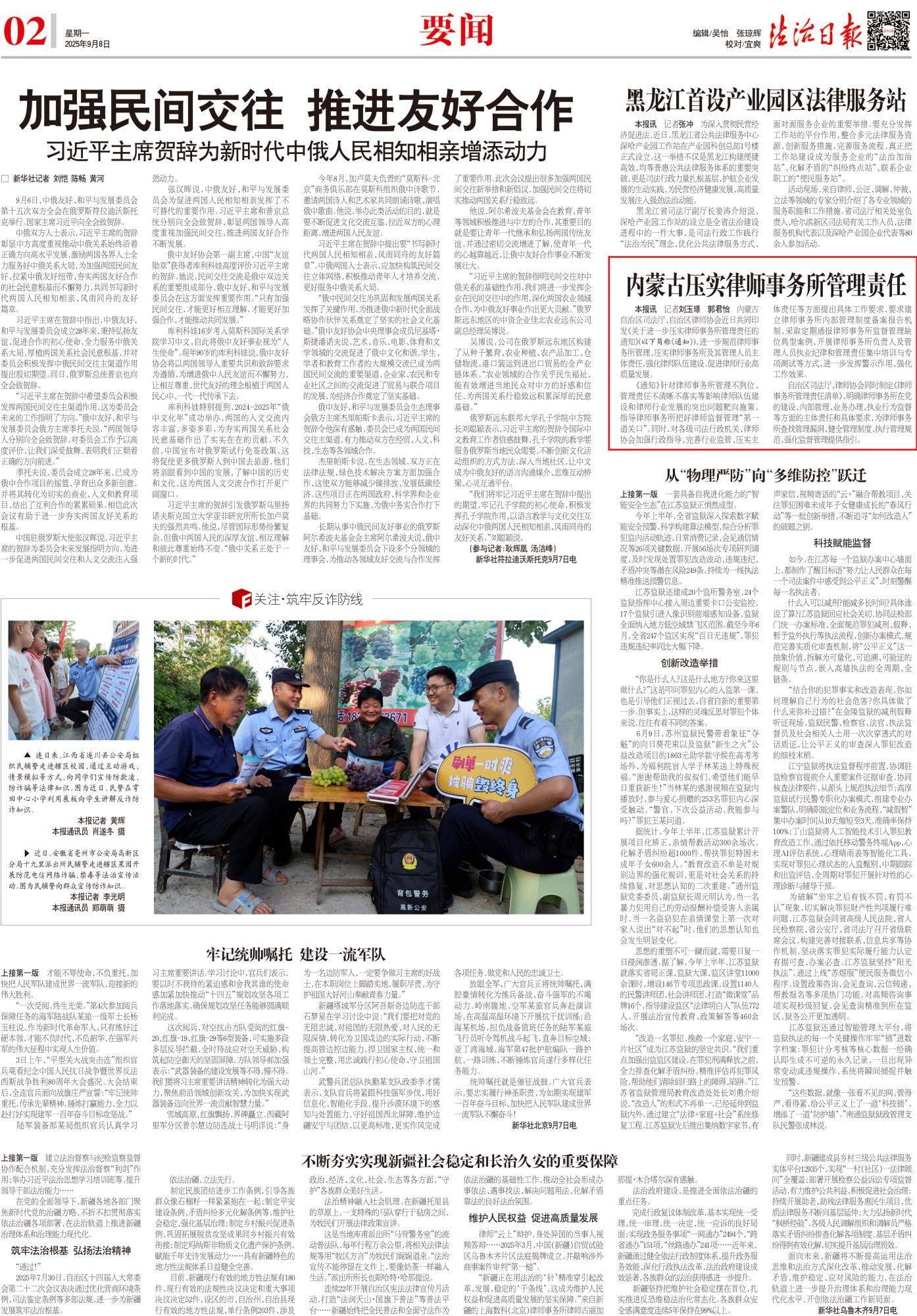 2025年9月8日,《法治日報》第2版整版刊發(fā)題為《內(nèi)蒙古壓實律師事務(wù)所管理責(zé)任》的文章,報道了內(nèi)蒙古自治區(qū)司法廳、自治區(qū)律師協(xié)會近日共同印發(fā)《關(guān)于進(jìn)一步壓實律師事務(wù)所管理責(zé)任的通知》,進(jìn)一步規(guī)范律師事務(wù)所管理,壓實律師事務(wù)所及其管理人員主體責(zé)任,強(qiáng)化律師隊伍建設(shè),促進(jìn)律師行業(yè)高質(zhì)量發(fā)展。
