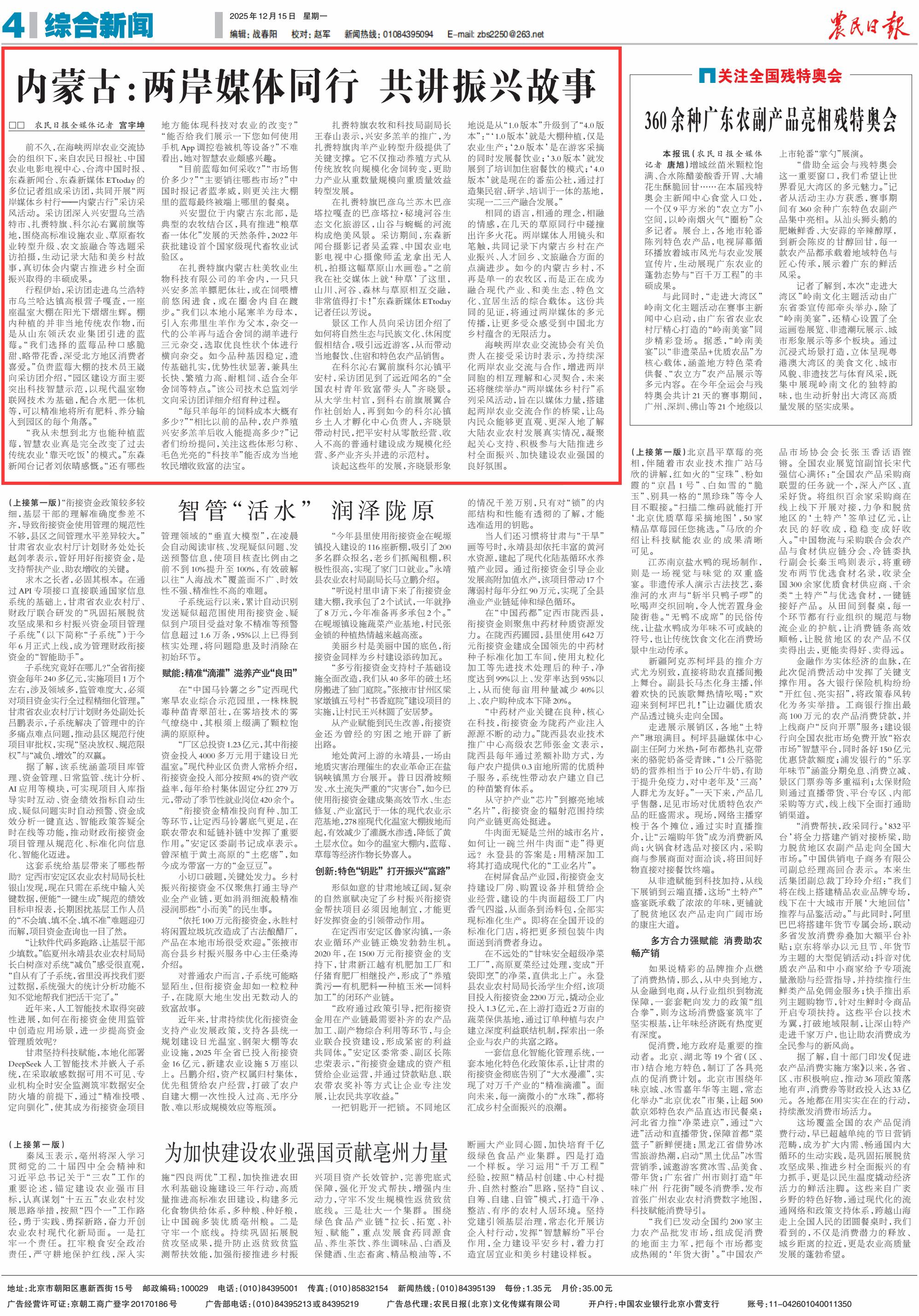 2025年12月15日《農(nóng)民日報》第4版刊發(fā)了《內(nèi)蒙古:兩岸媒體同行 共講振興故事》的文章,報道了前不久,在海峽兩岸農(nóng)業(yè)交流協(xié)會的組織下,來自農(nóng)民日報社、中國農(nóng)業(yè)電影電視中心、臺灣中國時報、東森新聞臺、東森新媒體ETtoday的多位記者組成采訪團,共同開展“兩岸媒體鄉(xiāng)村行——內(nèi)蒙古行”采訪采風(fēng)活動。兩岸媒體人用鏡頭和筆觸,共同記錄下內(nèi)蒙古鄉(xiāng)村在產(chǎn)業(yè)振興、人才回鄉(xiāng)、文旅融合方面的點滴進步。這份共同的見證,將通過兩岸媒體的多元傳播,讓更多受眾感受到中國北方鄉(xiāng)村蘊含的無限活力。