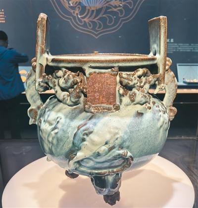 元代鈞窯“小宋自造”香爐。人民日報(bào)記者 張 棖攝