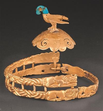 戰(zhàn)國時(shí)期鷹頂金冠飾。內(nèi)蒙古博物院供圖