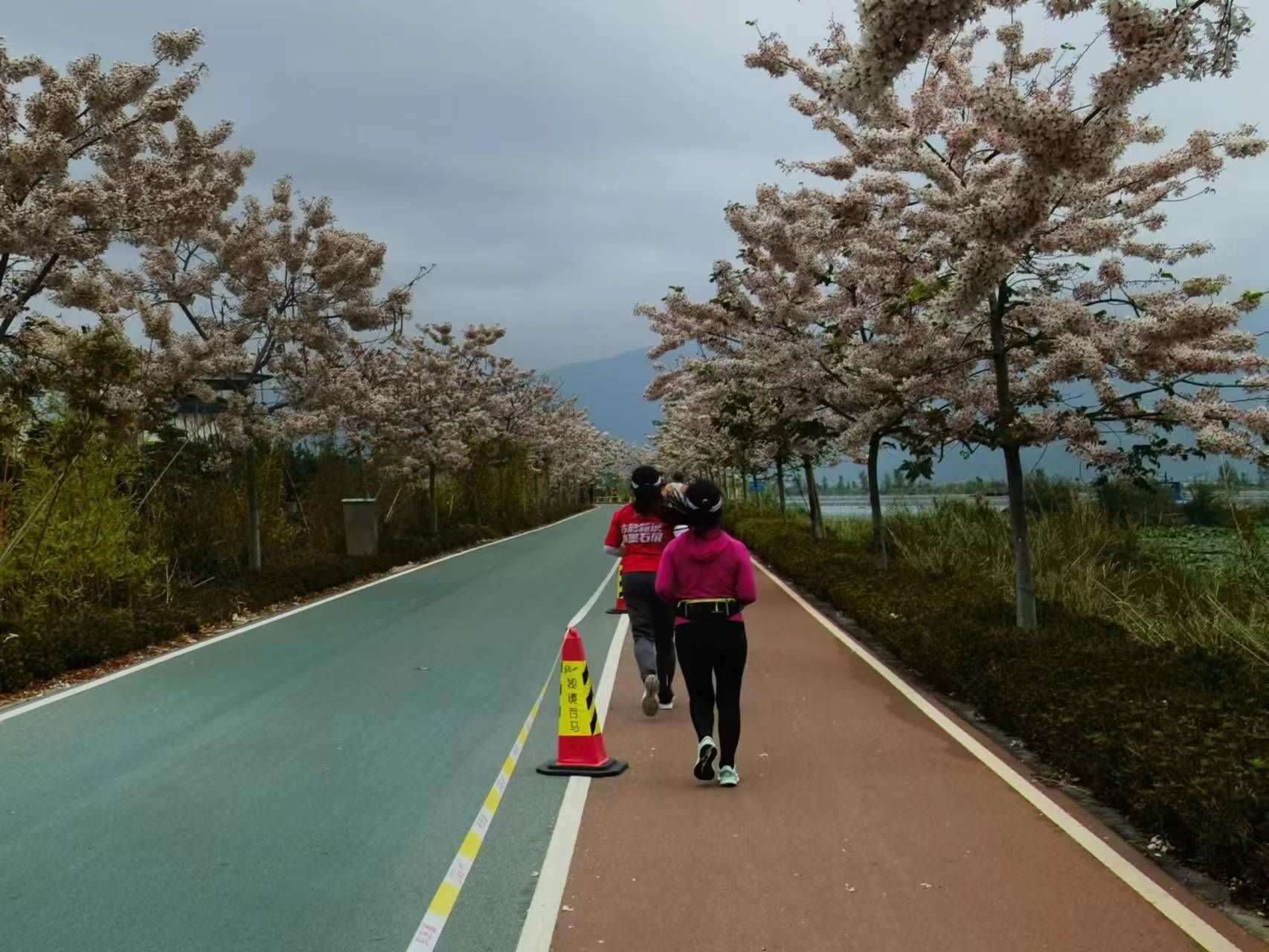 人民網黨委委員、監(jiān)事會主席唐維紅參加了此次半程馬拉松。完賽后,她總結此賽事的特點有“三美”——美在賽道。湖靜謐、山秀美,粉的神黃豆花、紅的三角梅、藍的百子蓮、藍花楹……爭相斗艷,跑在山水間,一步一風景!