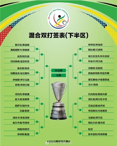 混合雙打簽表(下半?yún)^(qū))圖片來源:WTT世界乒聯(lián)官微