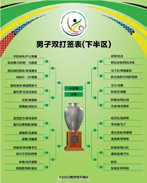2023德班世乒賽男單具體抽簽結果: