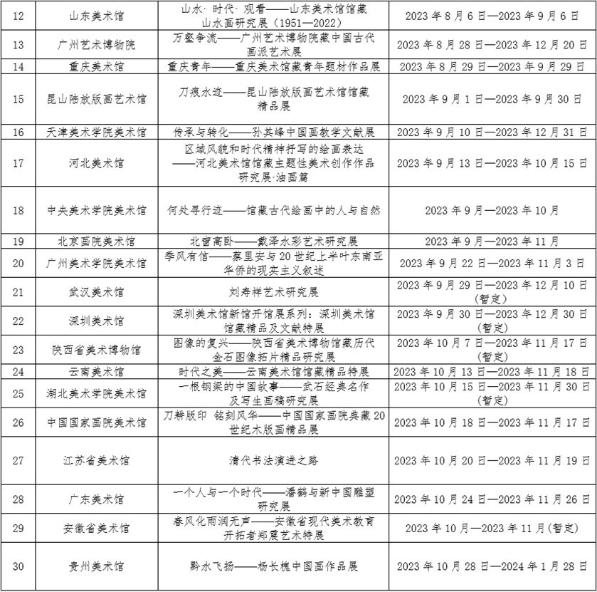 附:2023年全國美術(shù)館館藏精品展出季活動(dòng)目錄(按展覽時(shí)間排序)