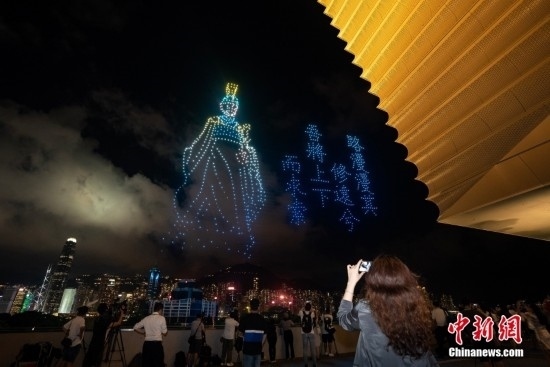 6月22日晚間,“紫荊花之夜”無人機燈光創(chuàng)意秀在香港故宮文化博物館畔的海面上空舉行,2000架無人機演繹多個與“端午節(jié)”相關(guān)的圖案,點亮香港夜空。