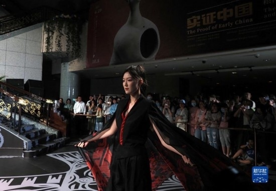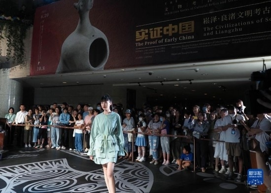 8月25日晚,模特在上博“研色·良渚之夜”綜合藝術(shù)秀上展示時裝。