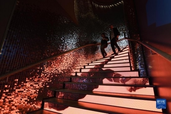 10月12日,在瑞士蘇黎世,人們走下國際足聯博物館的臺階。新華社記者 連漪 攝