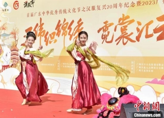 中新網(wǎng)廣州11月18日電 (記者 程景偉)2023云山漢服節(jié)啟動(dòng)儀式18日在廣州市白云山鳴春谷景區(qū)山頂廣場(chǎng)舉行,現(xiàn)場(chǎng)通過(guò)醒獅、舞蹈等節(jié)目表演,拉開(kāi)了首屆廣東中華優(yōu)秀傳統(tǒng)文化節(jié)系列活動(dòng)之漢服復(fù)興20周年紀(jì)念暨2023云山漢服節(jié)活動(dòng)的帷幕。