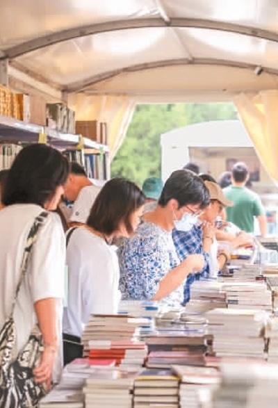游客在2023“我與地壇”北京書市現(xiàn)場(chǎng)選購書籍。本報(bào)記者 蔣雨師攝