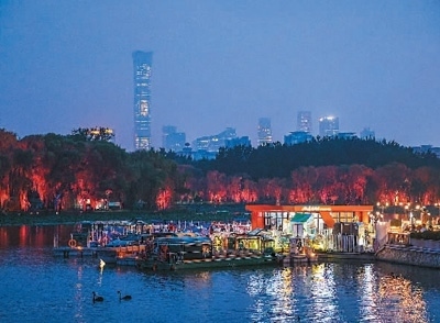 北京市朝陽區(qū)通過建設(shè)亮馬河國(guó)際風(fēng)情水岸,以河道復(fù)興引領(lǐng)城市更新,讓市民和游客樂享都市生態(tài)美景,感受多彩首都文化。圖為亮馬河國(guó)際風(fēng)情水岸風(fēng)光。 王 初攝(人民圖片)