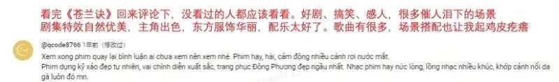 2023年前后,網(wǎng)劇《點燃我,溫暖你》和《長月燼明》發(fā)行至越南,迅速占據(jù)Vieon等越南本地視頻平臺首位。越南觀眾在評論區(qū)內(nèi)毫不吝嗇自己的喜愛:“我已經(jīng)看了第二遍,每次都會哭?!薄八畜@人的演員陣容、服裝、風(fēng)景,簡直太完美了!”