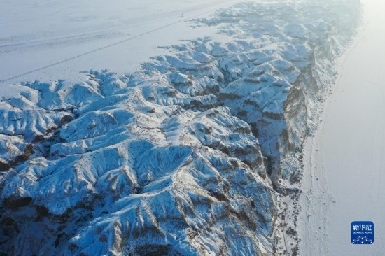 這是在新疆阿勒泰地區(qū)福海縣拍攝的海上魔鬼城冬景(12月21日攝,無人機(jī)照片)。