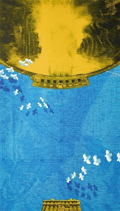 新時代長江氣象萬千。在重慶市文化和旅游發(fā)展委員會、重慶市文學(xué)藝術(shù)界聯(lián)合會等單位主辦的“2022同源·同向——長江流域十三省市自治區(qū)美術(shù)作品邀請展”上,龐茂琨油畫《輝耀九龍》、徐君華粉畫《浦江之夢》等作品,以充滿詩意的語言展現(xiàn)了日新月異的城鄉(xiāng)面貌與豐富多彩的現(xiàn)實生活。近年來,一批重大工程的實施,為百姓生活帶來便利,使長江流域涌動活力。一些美術(shù)工作者充分發(fā)揮視覺藝術(shù)的力量感,反映長江流域建設(shè)成就。比如,賀思恩版畫《蓄勢——破譯雅礱密碼》依托絲網(wǎng)版畫色彩表現(xiàn)力較強的藝術(shù)特色,以俯瞰視角,展現(xiàn)了長江流域水電站的時代風采。
