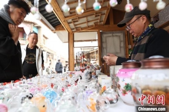 市民觀看艾福多創(chuàng)作內畫鼻煙壺。中新網(wǎng)記者 于晶 攝
