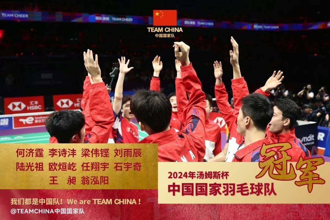 祝賀!國(guó)羽男隊(duì)第11次奪得湯姆斯杯冠軍