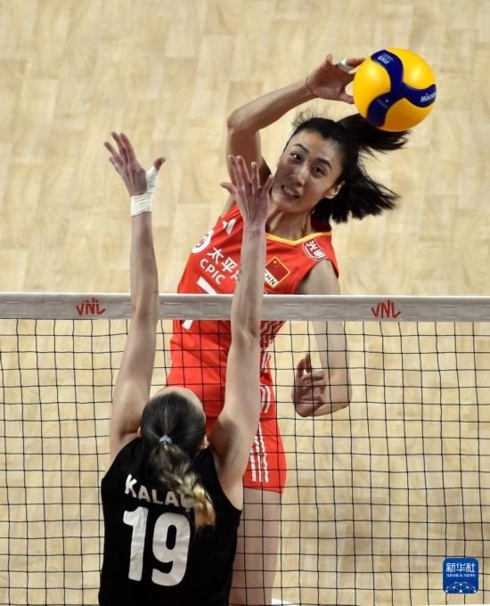 當(dāng)日,在世界女排聯(lián)賽中國香港站比賽中,中國隊3比2戰(zhàn)勝土耳其隊。