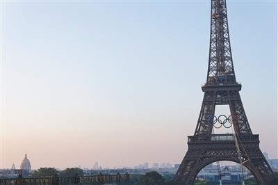 奧運(yùn)五環(huán)安裝在巴黎地標(biāo)性建筑埃菲爾鐵塔上。圖片來(lái)源:巴黎奧運(yùn)會(huì)官網(wǎng)
