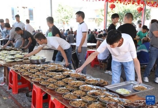 10月5日,在柳州市柳江區(qū)成團(tuán)鎮(zhèn)甘塘村,人們在準(zhǔn)備重陽節(jié)百家宴。