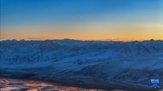 這是夕陽(yáng)下慕士塔格峰周邊的昆侖山脈(1月12日攝,無(wú)人機(jī)照片)。