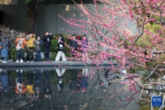 3月8日,人們?cè)谏虾lo安雕塑公園觀賞梅花。