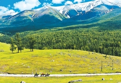 “網(wǎng)紅”打卡地變“長紅”目的地(煥新之旅) 游客在新疆維吾爾自治區(qū)阿勒泰地區(qū)哈巴河縣騎馬游玩。......