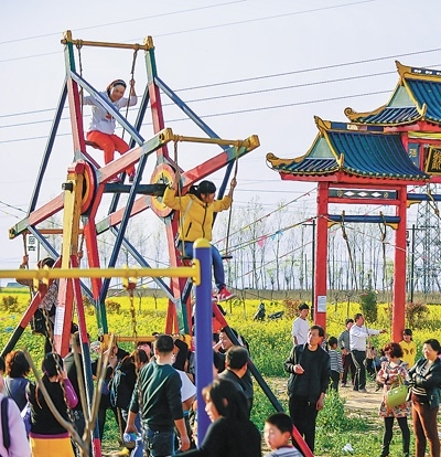 游客在司家村體驗特色秋千。