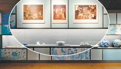 明代青花瓷與西方油畫中類似器物對(duì)照。