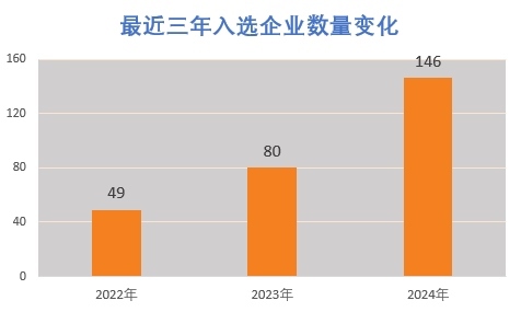據(jù)了解,入選企業(yè)評選標準非常嚴格,需同時滿足專業(yè)化、精細化、特色化、創(chuàng)新能力、產(chǎn)業(yè)鏈配套等多個指標。盡管如此,2024年名單中的企業(yè)與2022年49家和2023年80家相比,大幅增加到146家。