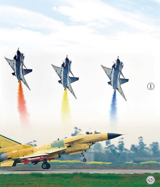 圖①:2016年,殲—10飛機航展表演。