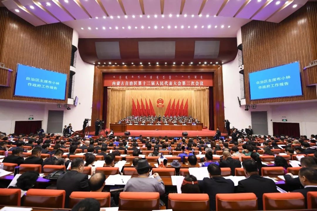 1月12日上午,內(nèi)蒙古自治區(qū)第十三屆人民代表大會第三次會議在內(nèi)蒙古人民會堂開幕。內(nèi)蒙古自治區(qū)主席布小林作政府工作報告。