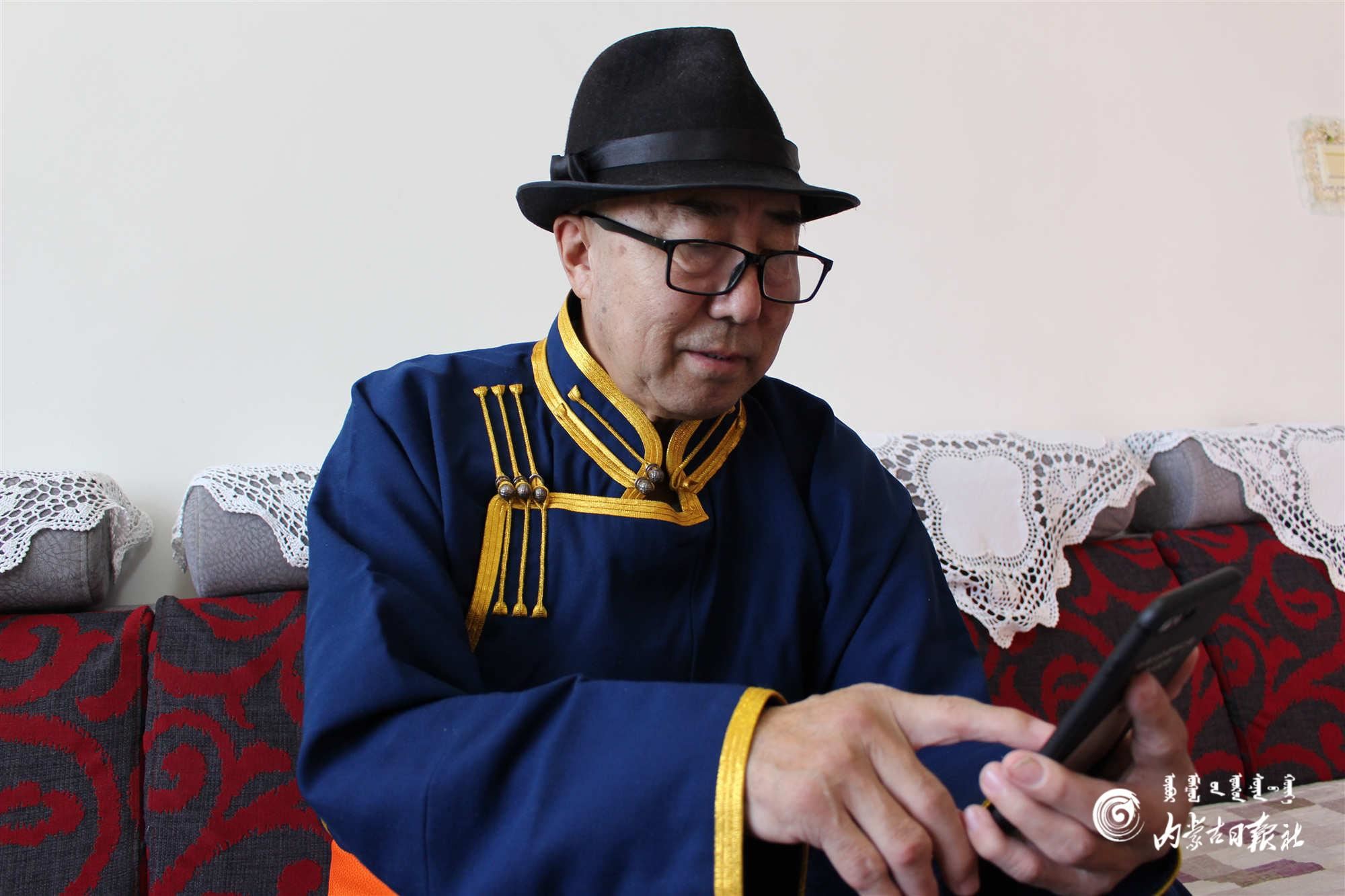 阿拉坦倉(cāng)老人通過(guò)手機(jī)了解兩會(huì)信息。