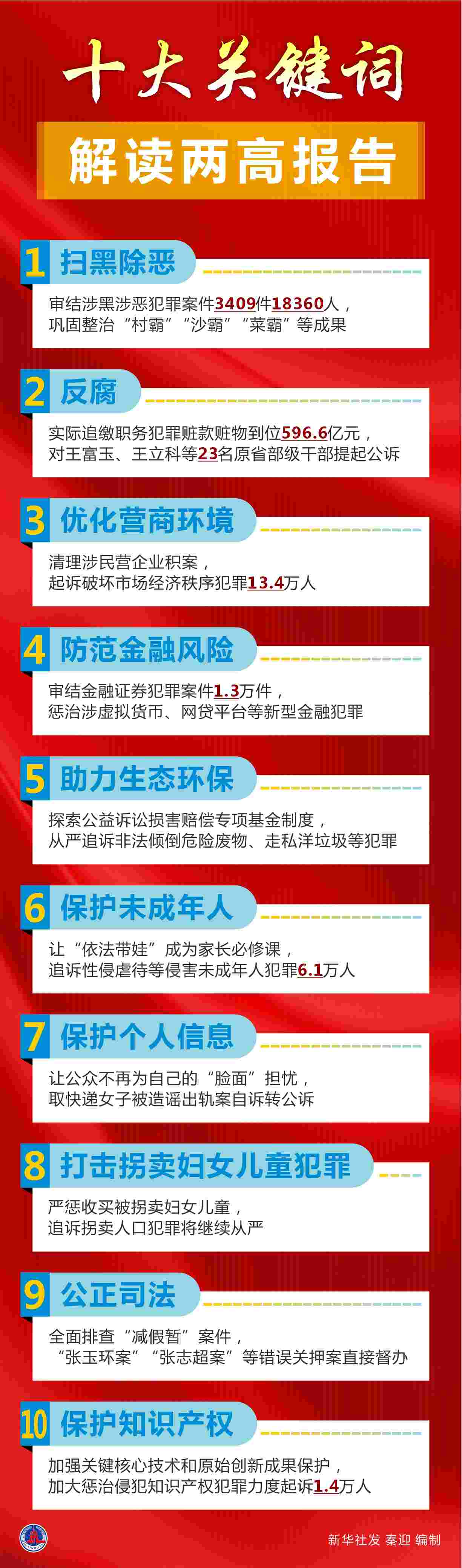 新華社北京3月8日電 題:十大關(guān)鍵詞解讀兩高報告