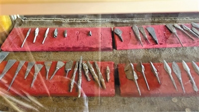 諾敏朝魯?shù)膫鹘y(tǒng)牛角弓制作基地位于土默特左旗畢克齊鎮(zhèn)襖太村,制作基地開辟了一個(gè)專門的傳統(tǒng)角弓展廳,一走進(jìn)展廳,便會(huì)被墻上掛得滿滿當(dāng)當(dāng)?shù)墓鸷??!斑@是土耳其弓,那把是韓國(guó)弓,這個(gè)是荷蘭弓……”諾敏朝魯一臉驕傲地向記者介紹,如數(shù)家珍般講述著他收藏的不同種類、不同地區(qū)的弓箭。
