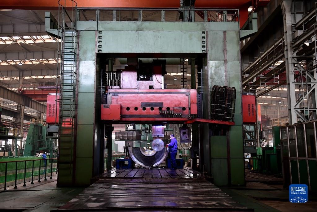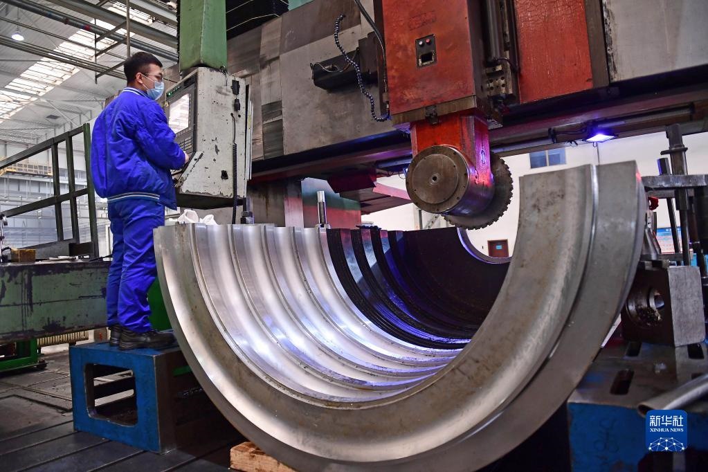 2020年3月16日,在沈陽鼓風機集團股份有限公司生產(chǎn)車間,工人操作機器加工產(chǎn)品內(nèi)機殼。新華社記者 楊青 攝