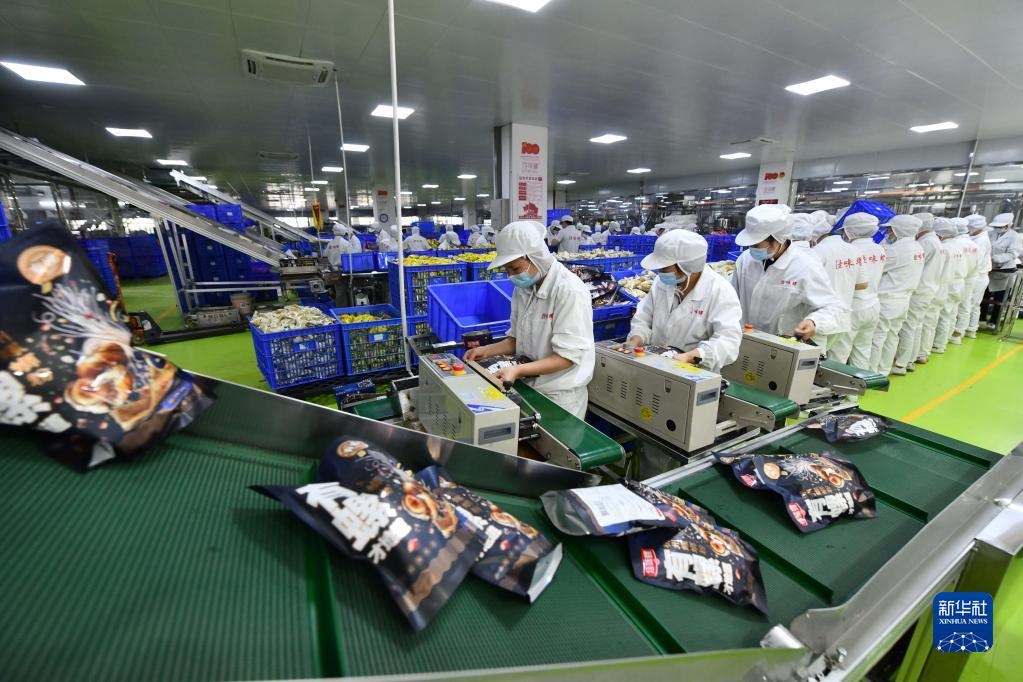 在廣西柳州市螺螄粉生產(chǎn)集聚區(qū)的廣西善元食品有限公司螺螄粉生產(chǎn)車(chē)間,工人在生產(chǎn)線上包裝產(chǎn)品(1月6日攝)。新華社記者 黃孝邦 攝
