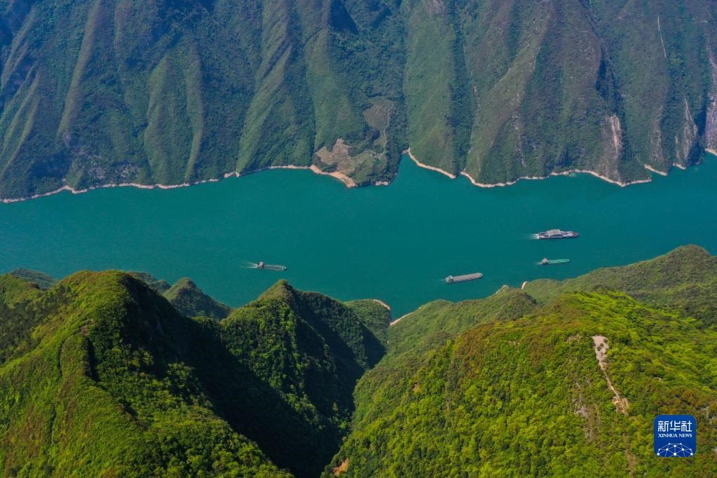 這是4月10日拍攝的長江瞿塘峽景色(無人機照片)。新華社記者 王全超 攝